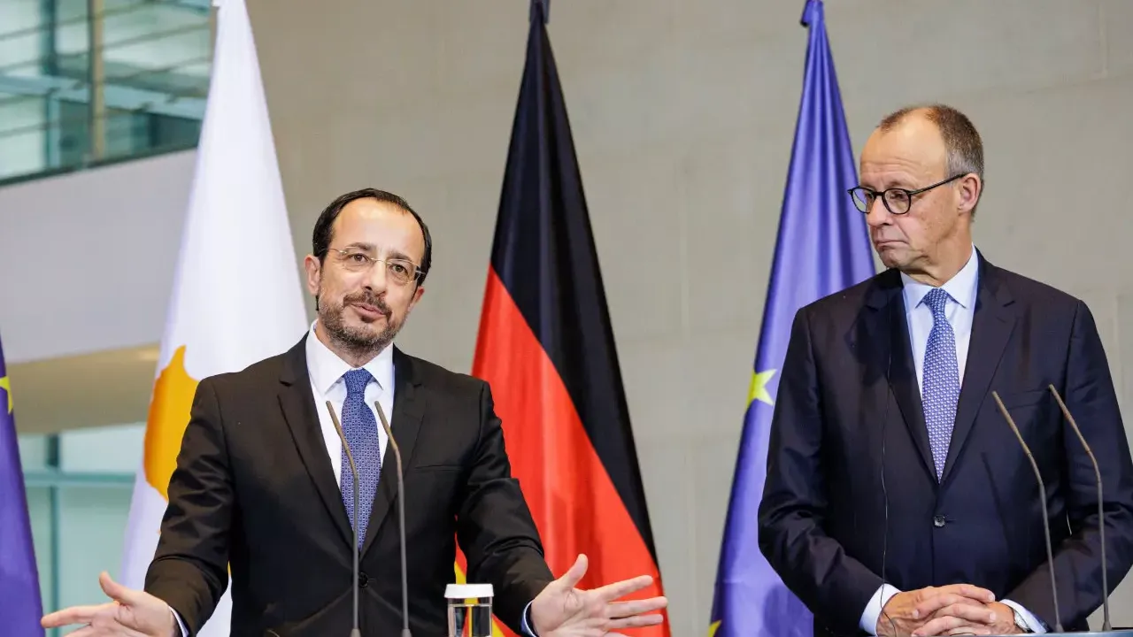 Almanya Başbakanı Friedrich Merz, başkent Berlin'de Güney Kıbrıs Rum Yönetimi (GKRY) Lideri Nikos Hristodulidis ile yaptığı görüşmenin ardından düzenlenen ortak basın toplantısında, GKRY'nin 2026'nın başında üstleneceği AB dönem başkanlığını ve AB'nin Türkiye ile ilişkilerini ele aldıklarını belirtti.