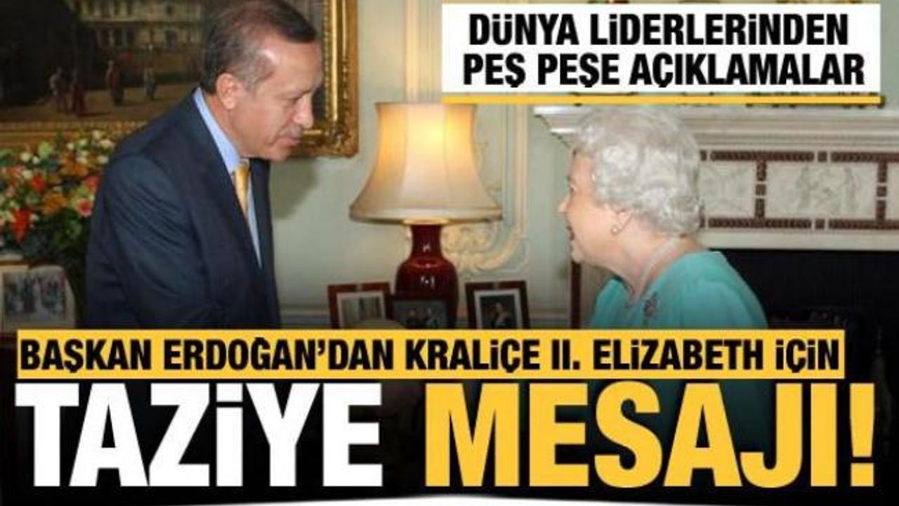 Cumhurbaşkanı Erdoğan, sosyal medya hesabından yaptığı paylaşımda, "Kraliçe II. Elizabeth'in vefatını bugün üzüntüyle öğrendim. Kraliyet Ailesi ile dost ve müttefik Birleşik Krallık halkı ve hükümetine en içten taziyelerimi sunuyorum." ifadelerini kullandı.