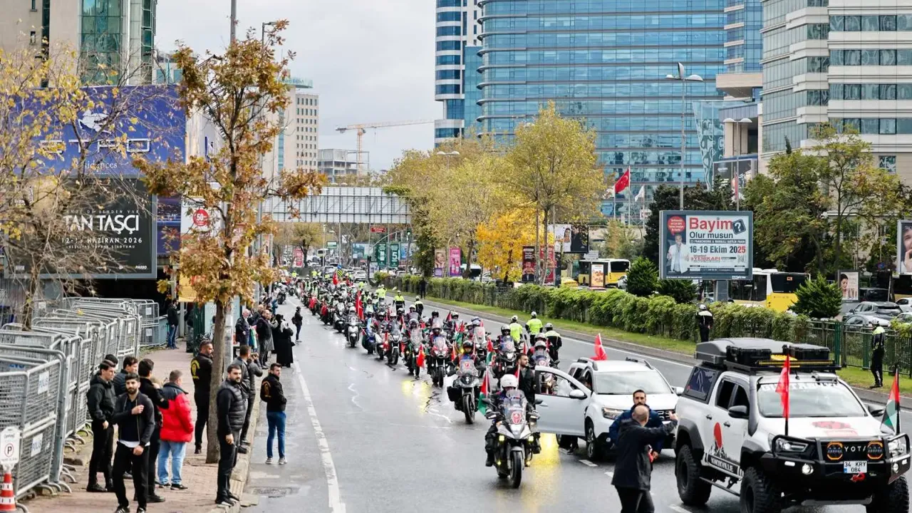 Konvoya yüzlerce araç ve binlerce kişi katıldı. Yenikapı Etkinlik Alanı'ndan başlayan konvoy, işgalci İsrail'in Levent'teki başkonsolosluğu önünde son buldu. Konvoya katılan ekipler adına burada bir basın açıklaması düzenlendi. Ekipler adına basın açıklamasını Beykoz Üniversitesi Doğal Afetlerde Arama Kurtarma Ekip Üyesi Kadir Şeker okudu. 'Bugün burada bulunmamızın amacı, Gazze halkının onurlu direnişine desteğimizi hep birlikte haykırmaktır' denilen açıklamada, 'Gazze'de sağlanan ateşkesin ardından, bölgenin yeniden ayağa kalkması, insanlığın vicdanı adına hepimizin ortak sorumluluğudur' denildi.