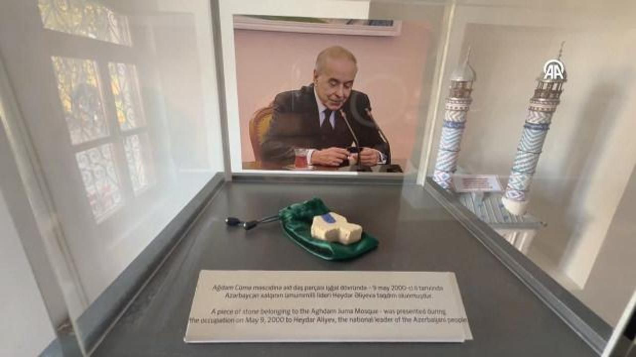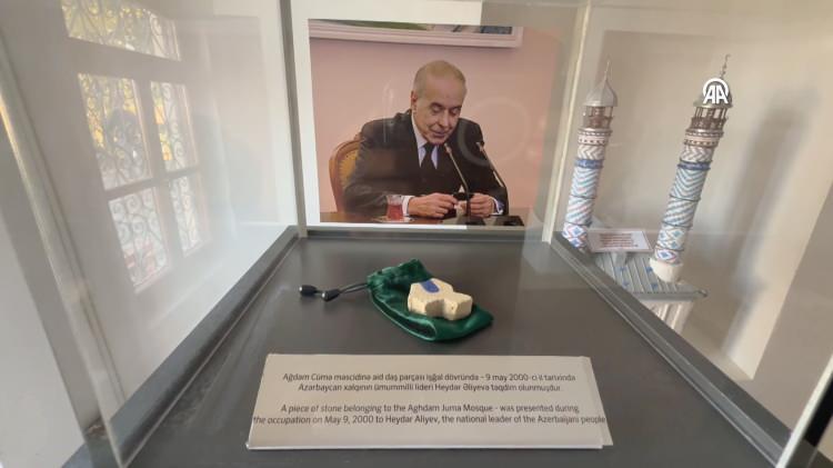 "Bu taş parçasını işgal zamanında Haydar Aliyev'e takdim etmişler. Haydar Aliyev, bu taşı saklamış ve bu taşın bu camiye bir gün geri döneceğine söz vermiş. İşgalden kurtarıldıktan sonra Sayın Cumhurbaşkanımızın sayesinde bu taş tekrar bu mescide getirilmiştir.