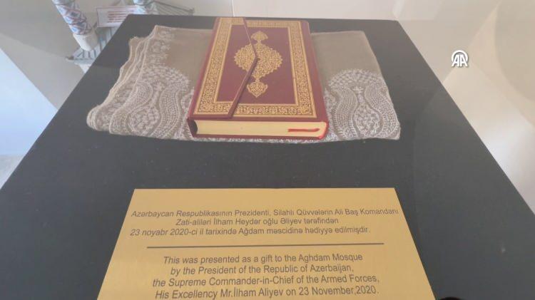 Kur'an-ı Kerim ise Sayın Cumhurbaşkanımız İlham Aliyev ve eşi Mihriban Hanım tarafından Kabe'den getirilip mescide takdim edilmiştir."