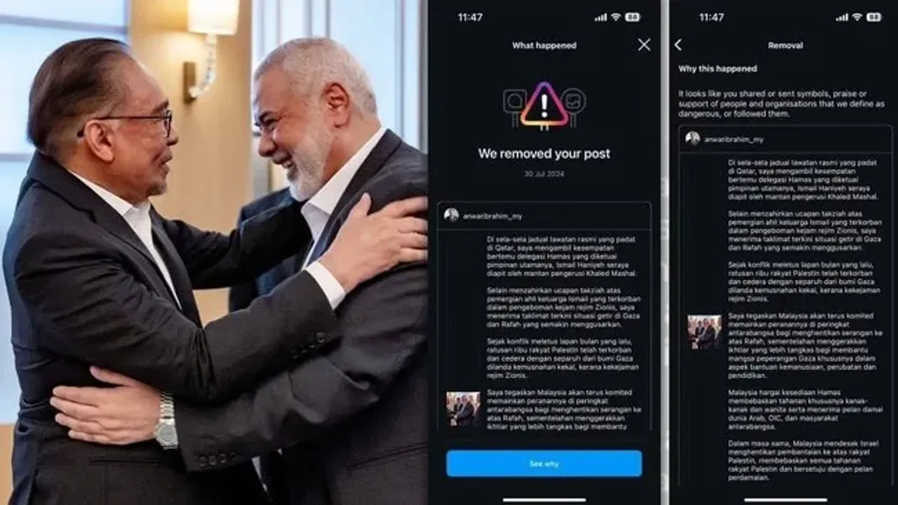 Siyonizmin aparatı Instagram ve Facebook platformlarının sahibi Meta, Haniye paylaşımlarına sistemli bir şekilde sansür uyguluyor. Silinen paylaşımlara sosyal medya kullanıcıları, Meta'ya #MetaCensorship etiketi ile tepki gösteriyor. Son olarak Malezya Başbakanı Enver İbrahim, Hamas Siyasi Büro Başkanı İsmail Haniye paylaşımını kaldırdığı için Instagram'ın sahibi Meta'yı sert bir dille eleştirdi.
