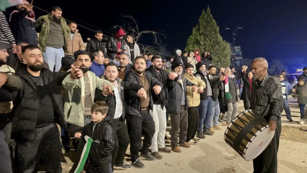Afrin'de toplanan Kürt vatandaşlar, davul ve zurnalar eşliğinde uzun süre Şara'nın imzaladığı kararnameyi kutladı.