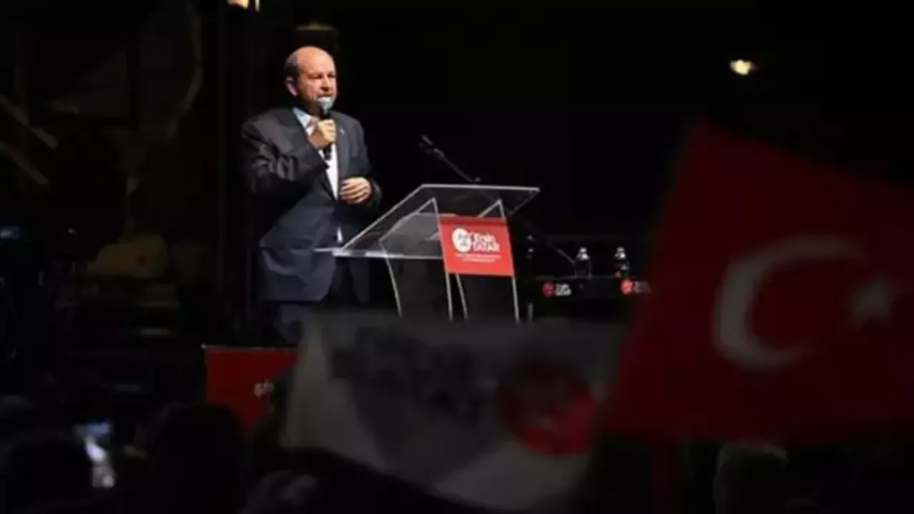 Konuşması alanı dolduranlar tarafından sık sık sloganlarla kesilen Tatar, federasyon defterini kapattıklarını söyleyerek, 'KKTC'ye sahip çıkmaya devam edeceğiz. Güzelyurt'tan da Lefke'den de Karpaz'dan da Mağusamız'dan da Girne'den de Lapta'dan da İskele'den de Lefkoşa'dan da vazgeçmeyiz. Hodri meydan! Cesareti olan çıksın da vereceğim desin. Cesareti olan gelsin de alsın bakalım, alabiliyor mu?' şeklinde konuştu.